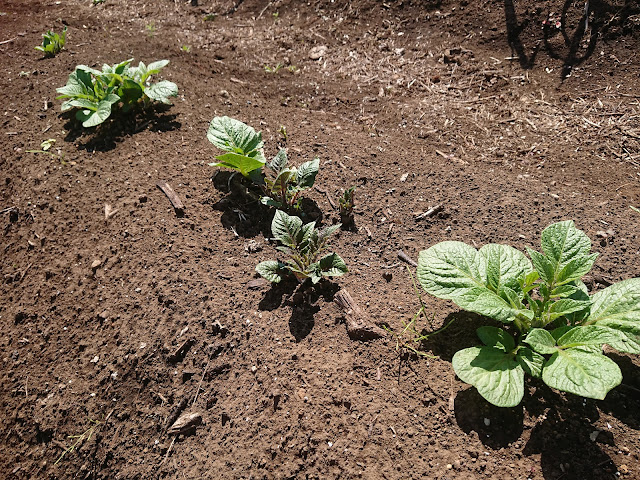 ▽休みの日。特にすることもないので、前日に行けなかった畑へ。夜中がかなり寒かったからなのかジャガイモが弱っていました。ちゃんと育つのか不安。